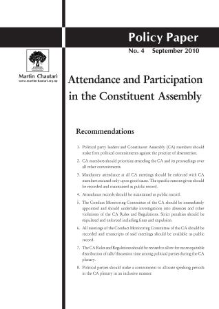 Attendance and Participation in the Constituent Assembly September 2010 संविधानसभामा उपस्थिति र सहभागिता असोज २०६७
